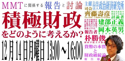 公益財団法人政治経済研究所のシンポジウムでお話させて頂きました。当日の動画が公開されていますので、ぜひご覧下さい。 公益財団法人政治経済研究所の主催シンポジウム 「積極財政をどのように考えるか―MMTに関係する報告と討論―」 報告者 朴勝俊(関…
